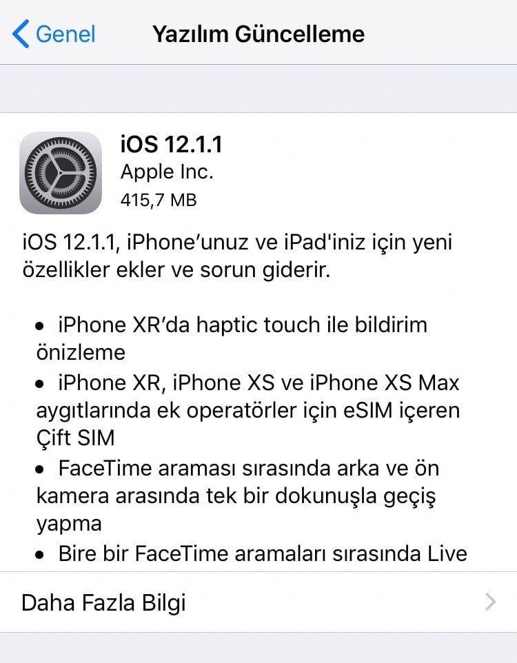 iOS 12.1.1 ile gelen özellikler ve iyileştirmeler aşağıdaki maddelerden oluşuyor:
