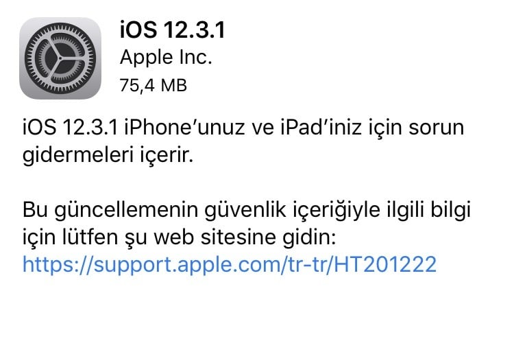 iPhone ve iPad’ler için sorun gidermeler içeren iOS 12.3.1 yayınlandı.