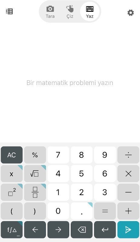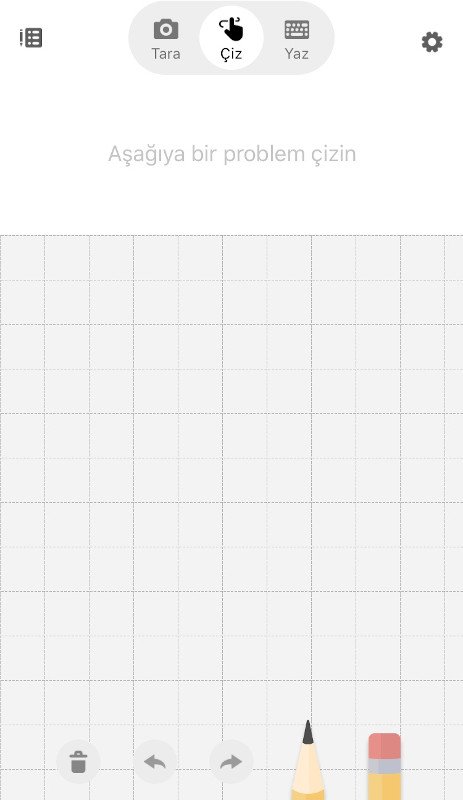 Uygulama içinde 3 farklı yöntem ile problemlerinize çözüm bulabilirsiniz. İster problemi kamera ile taraya bilirsiniz, ister uygulamada kendiniz çizebilirsiniz, isterseniz de ekranda beliren klavye ile tuşlayarak yazabilirsiniz.