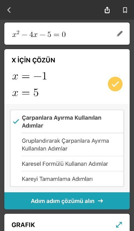 - Adım adım açıklamalar ve Grafik hesap makinesi ile interaktif kullanım